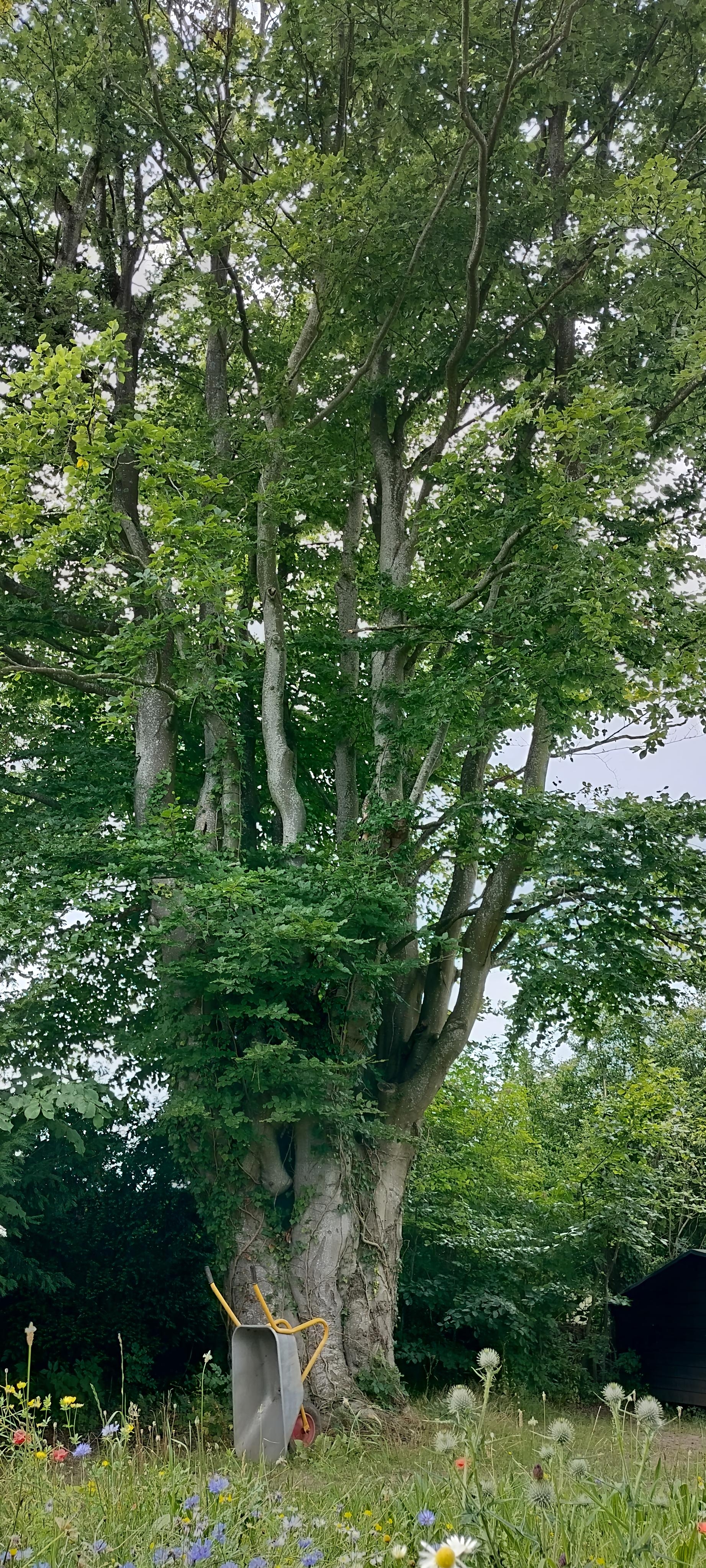 Træet vokser i skellet til et nybygget parcelhuskvarter, hvor opfattelsen er, at der ikke ønskes store træer.